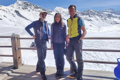 Oggi era in programma la salita con ciaspole all'alta luce, previsioni meteo ottime ma temperature di circa 10 gradi oltre la media e uno zero termico a circa 3800 m che si traduce in neve pesante anche in alta quota. La fortuna è stata che nella notte c'è stato un minimo di rigelo e una neve ben consolidata il che ci ha consentito di fare una prima parte del percorso senza troppe fatiche.
