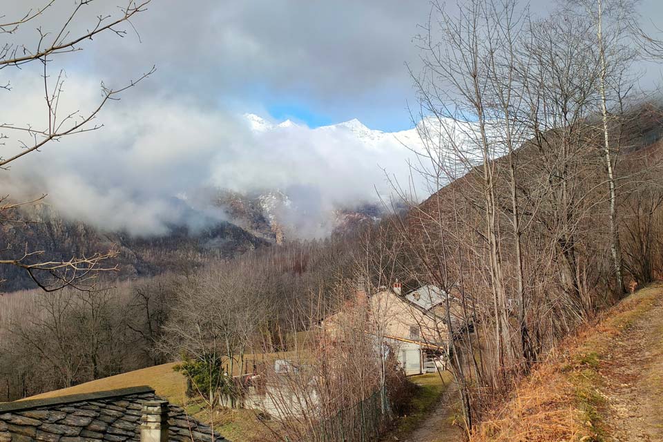 Arriviamo all'imbocco della Valchiusella e oltre a smettere di piovedere si intravede un buco azzurro. Facciamo colazione al bar e ci portiamo alla partenza dell'escursione.
